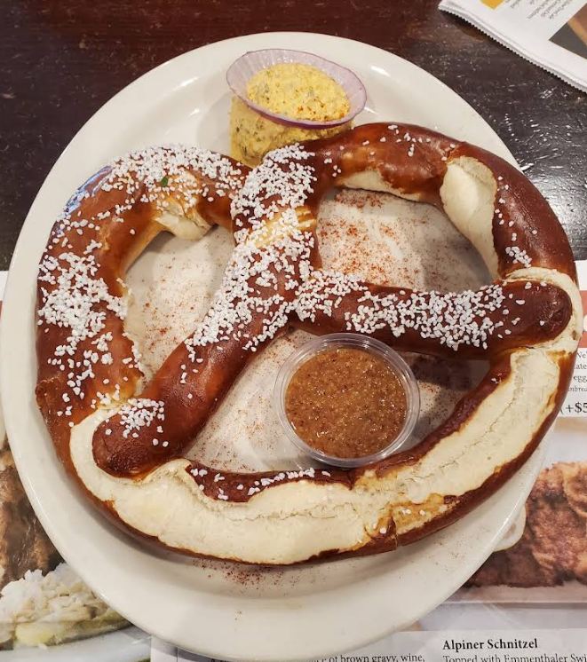 No German meal feels complete without a pretzel on the table, and the soft pretzel here delivers. Warm, chewy, and lightly salted, it’s served with a rich beer cheese that’s creamy, sharp, and perfect for dipping between bites of schnitzel.